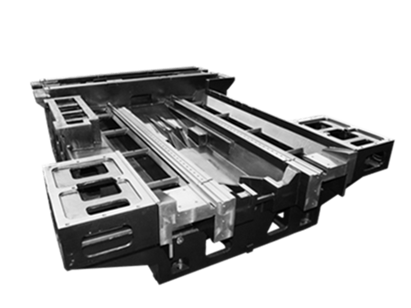 一體式鑄造T型床身,內部布置M型加強筋,提供強力切削所需要的高剛性結構,三軸導軌采用重載滾柱導軌支撐結構,從而使機床得到高剛性和長久穩定的精度。