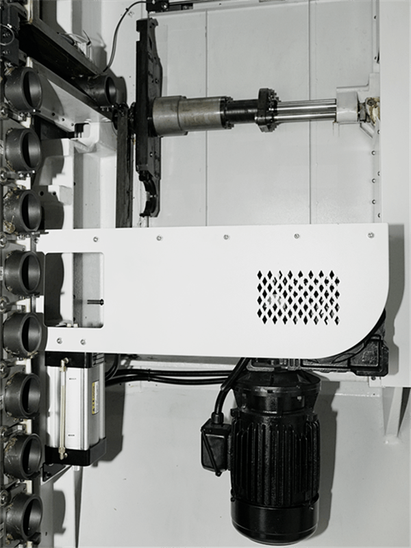 標配40把伺服刀庫,凸輪機械手與刀庫門實現聯動控制,換刀時間2.5s。